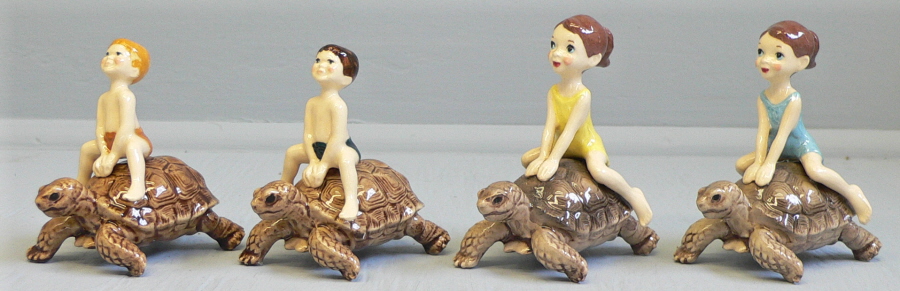 Hagen Renaker Test Mold Boy and Specialty Girl on Tortoise
